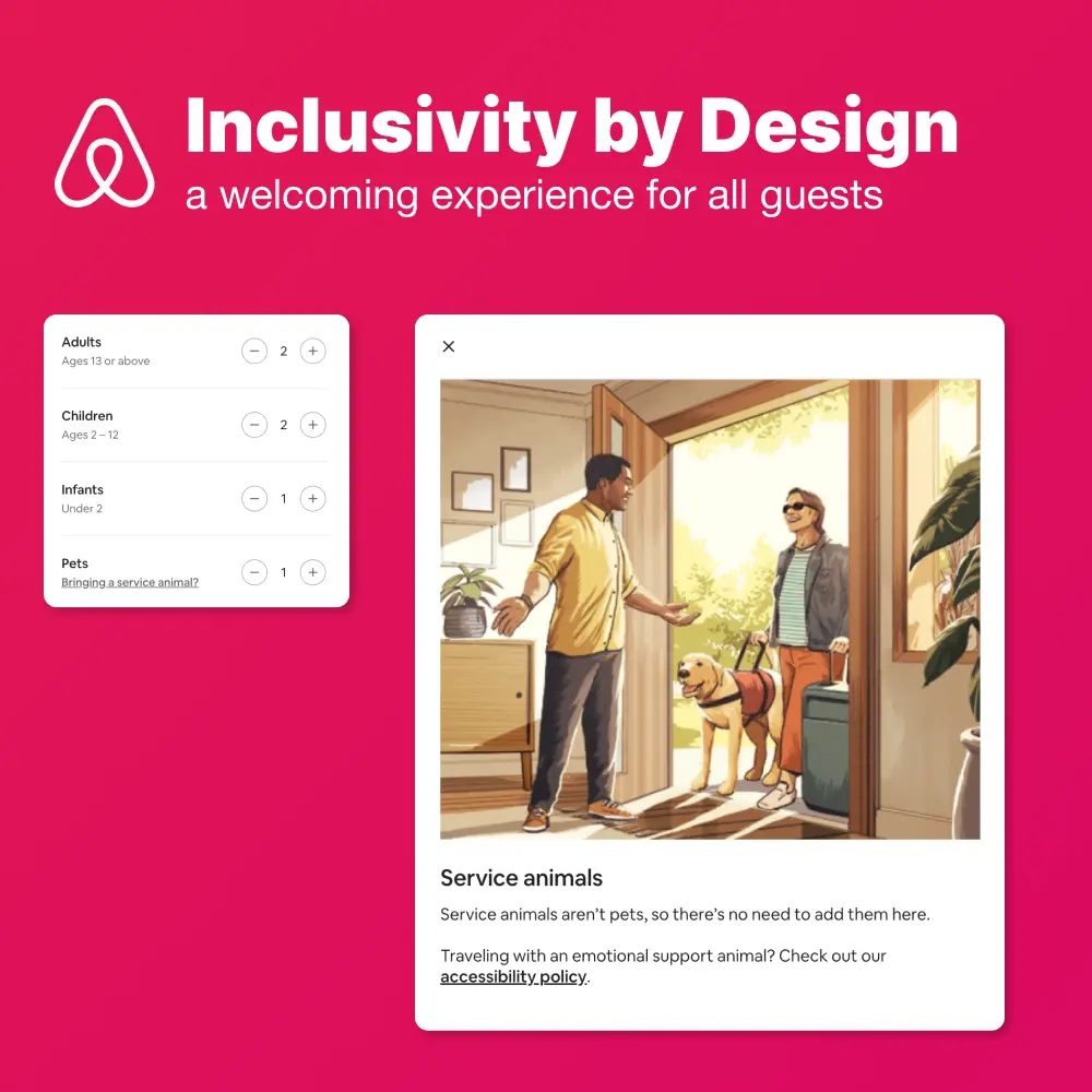 🌎 Inclusivity by Design: Everyone deserves a welcoming experience. Airbnb's thoughtful handling of service animal information, coupled with a user-friendly guest selection process, exemplifies this commitment. It`s only an example of its inclusivity approach.