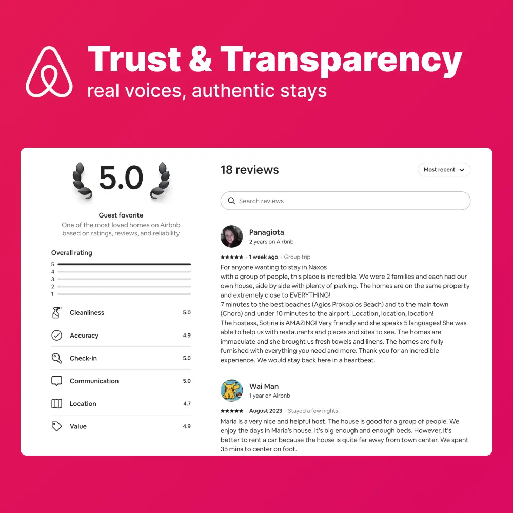 🌟 Trust & Transparency: Real reviews, authentic stays. Airbnb's platform thrives on transparency, with detailed reviews and ratings that foster trust between guests and hosts.